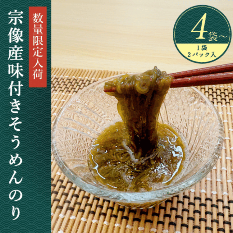 「そうめんのり」は、宗像市の限られた海域で ごく限られた時期にしか収穫できない天然の海藻。