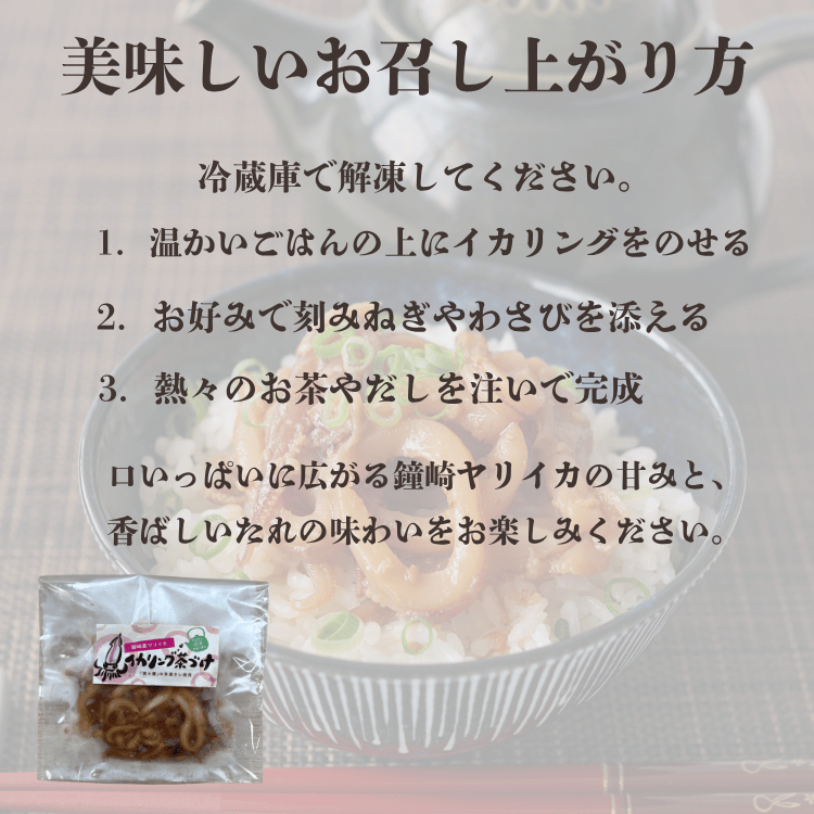 | 名称 | イカリング茶漬け(美々庵たれ) |